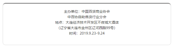 為了交流、探討中國自助售貨行業(yè)發(fā)展現(xiàn)狀、趨勢、問題,中國百貨商業(yè)協(xié)會自助售貨行業(yè)分會定于9月23-24日在大連召開“自助售貨行業(yè)發(fā)展峰會,暨中百協(xié)自助售貨分會2019年理事會擴大會”。