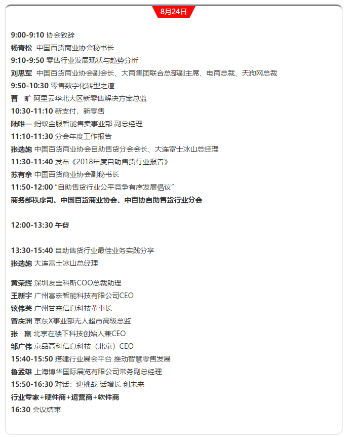 參會對象,中百協(xié)自助售貨分會、無人零售分會會員單位,及非會員的自助、無人零售企業(yè),部分大型零售企業(yè)技術(shù)負(fù)責(zé)人、營銷負(fù)責(zé)人,自助售貨行業(yè)加盟投資人。我們誠邀會員企業(yè)和相關(guān)企業(yè)參加本次自助售貨行業(yè)的聚會,共同推動行業(yè)健康發(fā)展!
